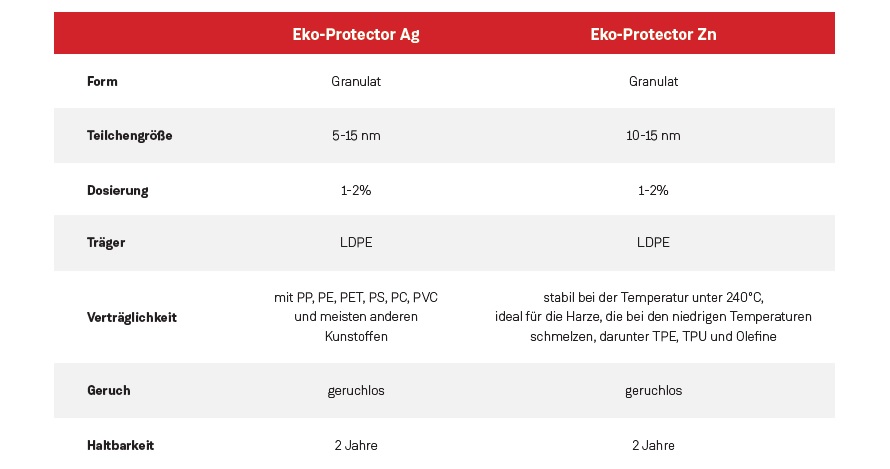 Eko-Protector Ag und Eko-Protector Zn sind Zusätze zu den Kunststoffen aus Nanosilber und Nanozink in einer Form eines praktischen Granulats.